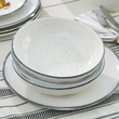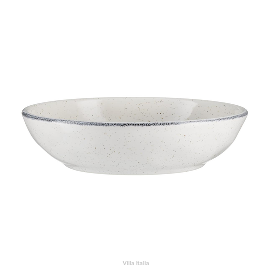 Talerz głęboki ceramiczny z kolekcji Vanilla. Linia ta przypadnie do gustu miłośnikom wyrobów rzemieślniczych. Talerze mają delikatnie nierówne powierzchnie i ścianki, co nadaje im naturalny i oryginalny wygląd. Naczynia w ciepłym odcieniu bieli zdobią nieregularne, czarno-szare obwódki oraz drobne beżowe i czarne kropki.