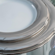 Talerz płytki obiadowy z kolekcji Valentino. Elementy kolekcji wykonane są z wysokiej jakości, śnieżnobiałej porcelany twardej. Kolekcja Valentino o eleganckim charakterze wyróżnia się nowoczesnym designem. Naczynia mają łagodne, zaokrąglone kształty i zdobione są platynowym wzorem. Wzór tworzą cienkie linie z szerszym, ręcznie malowanym platyną paskiem na obrzeżu. Valentino to doskonała propozycja dla osób ceniących połączenie prostych form i efektownych rozwiązań w aranżacji stołu. Valentino sprawdzi się jako zastawa na wyjątkowe okazje, podkreślając ich uroczysty charakter.