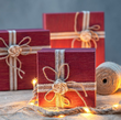 Zestaw prezentowy gotowy do wręczenia. Zawiera cztery eleganckie kubki z fantazyjnymi uchwytami. Naczynia wykonane ze szlachetnej porcelany kostnej w mlecznym odcieniu bieli. Kubki są formowane ręcznie i dekorowane platyną na obrzeżach i uchwytach. Zestaw kubków zapakowany jest w pudełko prezentowe w kolorach czerwonym i beżowym, ze sznurkową dekoracją. Wewnątrz pudełko jest brązowe, a naczynia zabezpieczone są bibułą i wiórkami ozdobnymi.